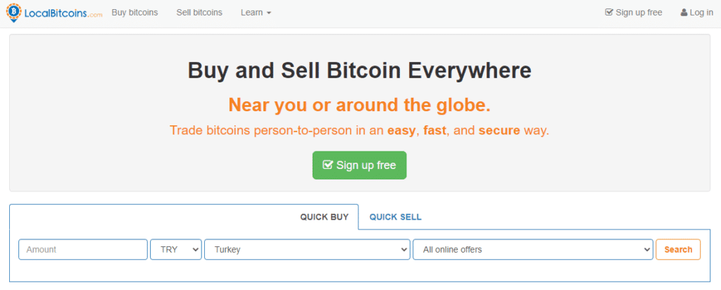 Just like all the services you need to create an account to benefit from LocalBitcoins. Once you are done, you can set the parameters for your trade such as the number of Bitcoins you want to buy, your country, fiat cuency, and payment method. Unfortunately, LocalBitcoins was designed to be a platform where buyers and sellers can meet face to face.
